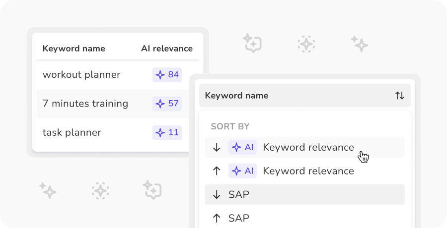 Check the fit for each keyword with a 1-100 score calculated by Asapty AI algorithms