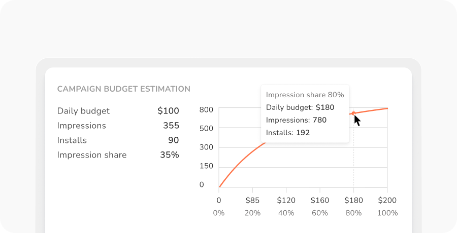Select the optimal budget and see the projected impressions and installs that this campaign could deliver