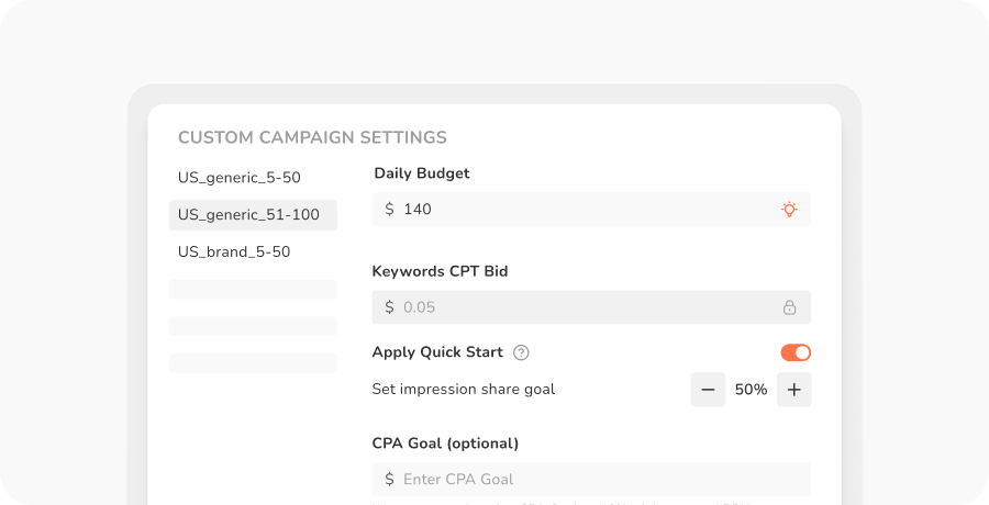Refine your campaigns individually with any specific goal in mind. For example, change bids for brand campaigns only or decrease the budget for your largest campaign