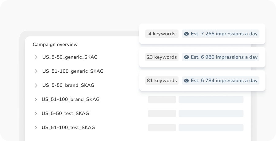 As you name your campaigns check the impression estimation for individual keywords and campaign totals